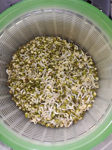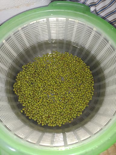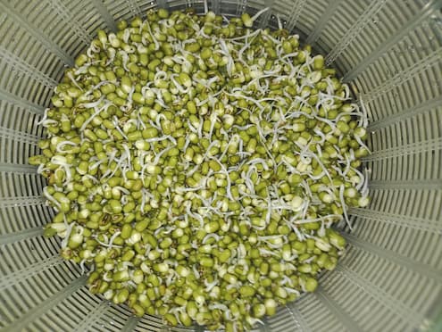 発芽に時間がかかると、完成したモヤシが繊維っぽく堅くなるので、30℃近辺で一挙に発芽させて下さい。