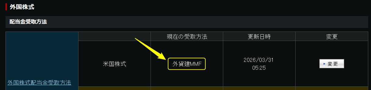 配当金も忘れずに外貨建てMMFに設定してください。 - ただしドルに両替した直後だけは自分で手動でMMFを買い付ける。